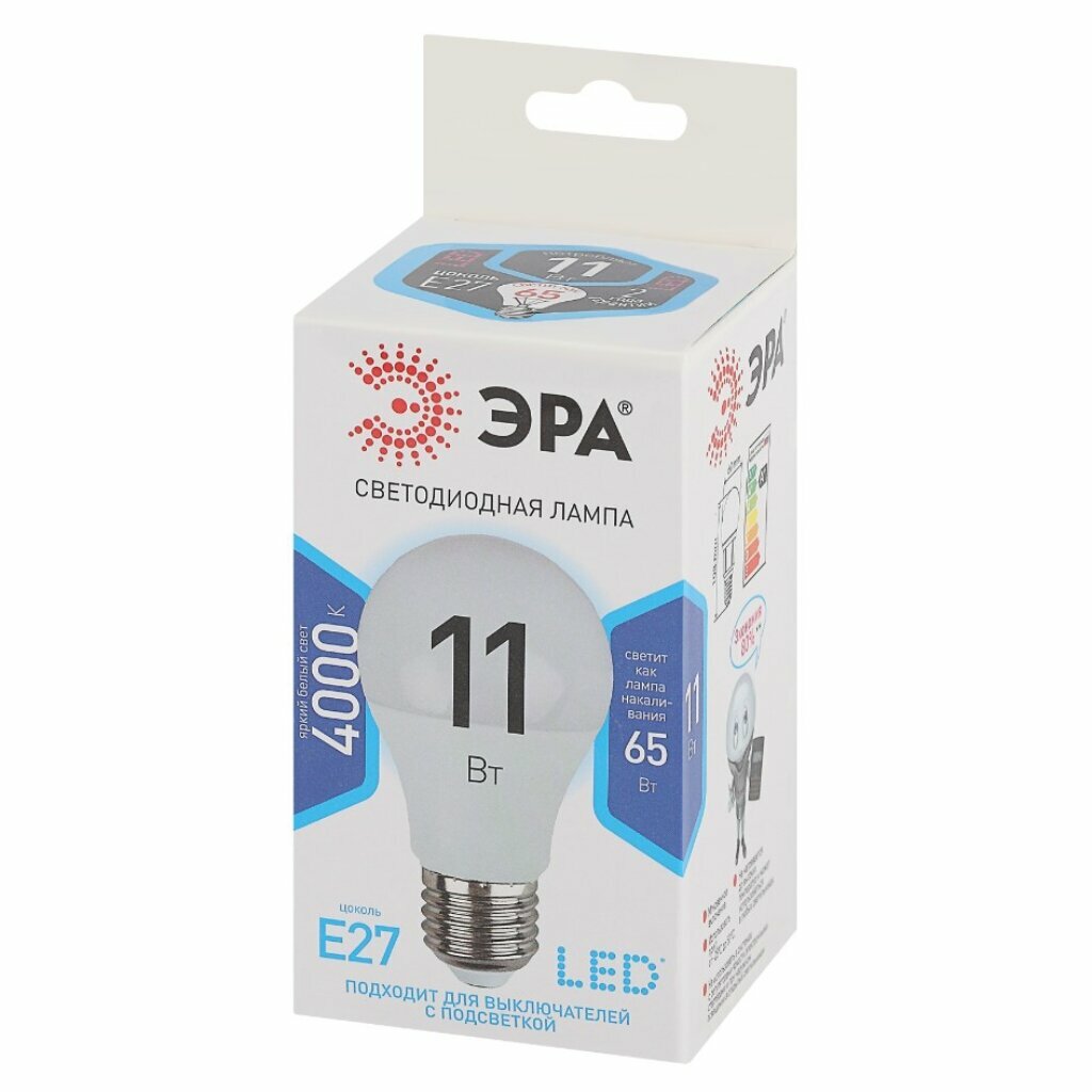Купить Эра Лампа светодиодная LED A60-11W-840-E27 4000k, нейтральный свет, белый, колба
