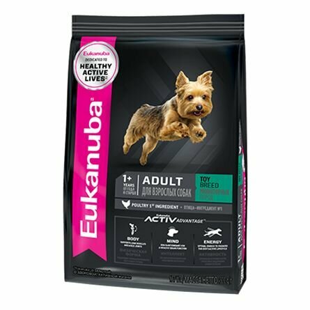 Корм сухой Eukanuba Adult Toy Breed для взрослых собак миниатюрных пород, птица, 3,5 кг
