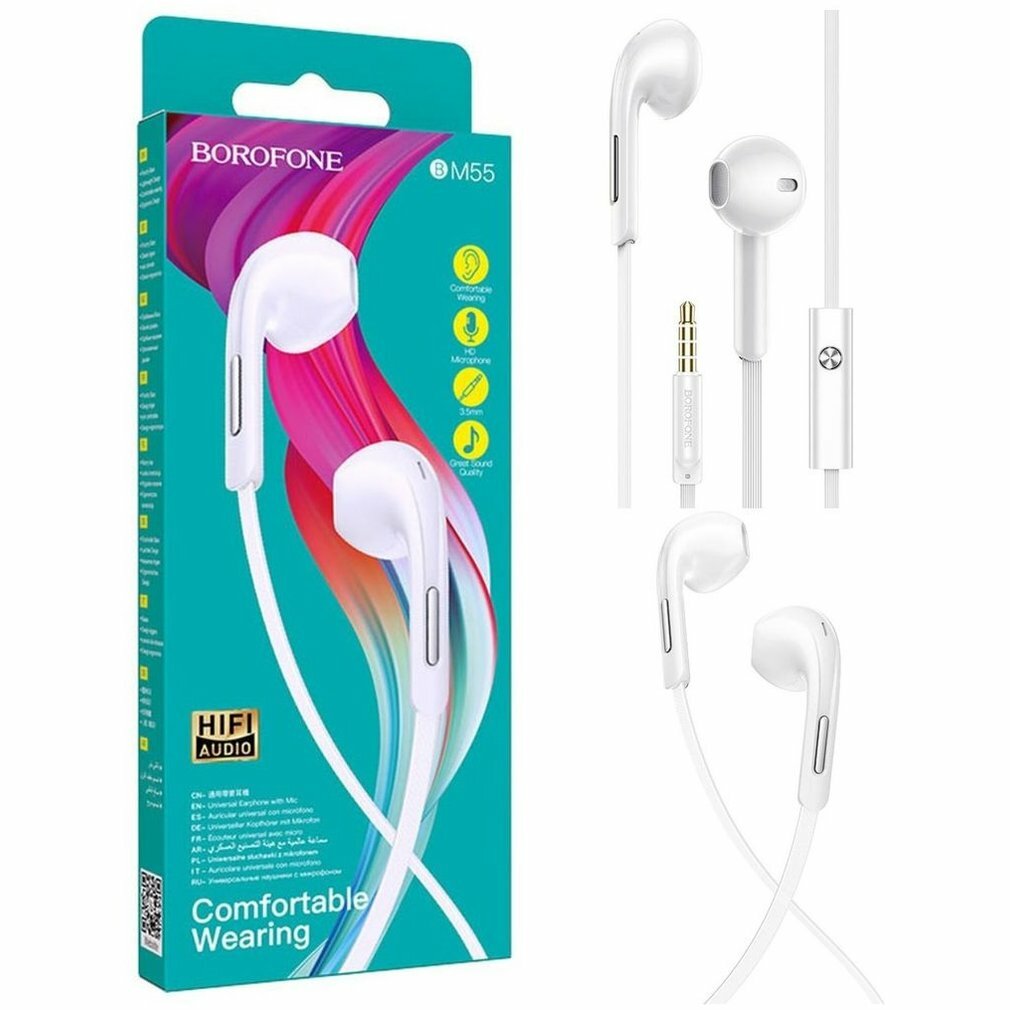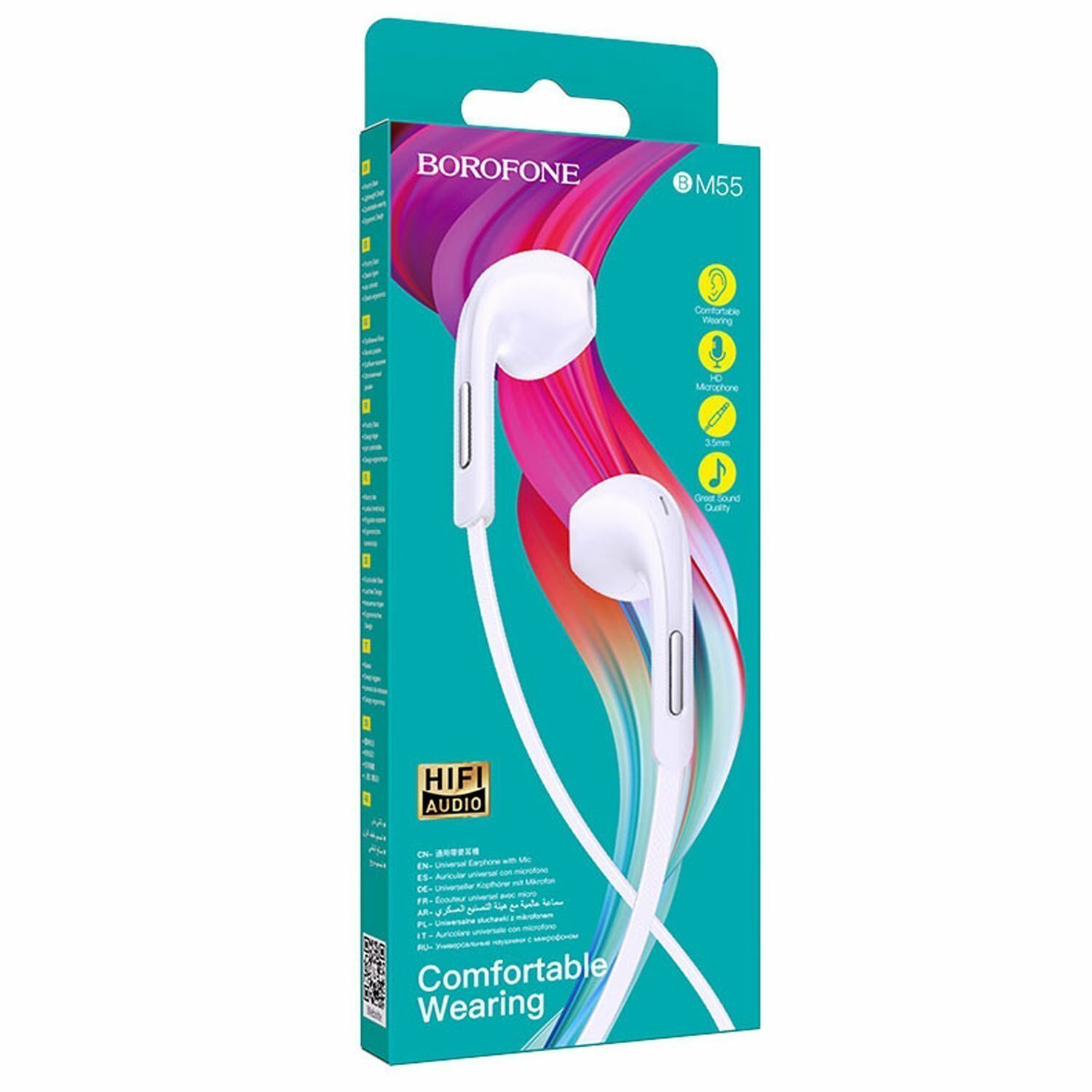 Купить Borofone Наушники Borofone BM55, проводные, вкладыши, микрофон, 16 Ом, 3.5 мм, 1.2 м, белые