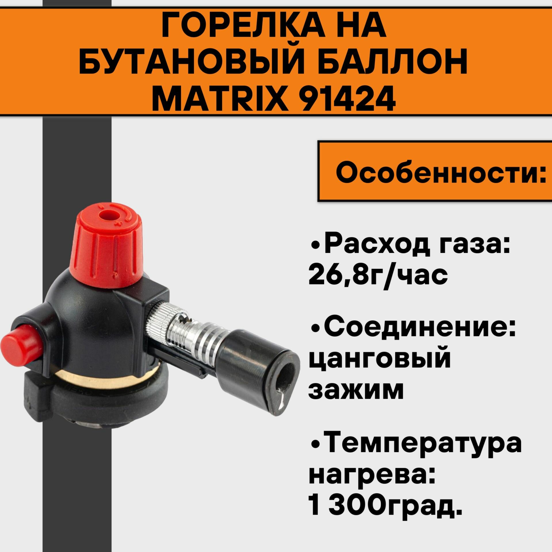 MATRIX 91424 Горелка газовая под цанговый баллон с пьезоподжигом MATRIX