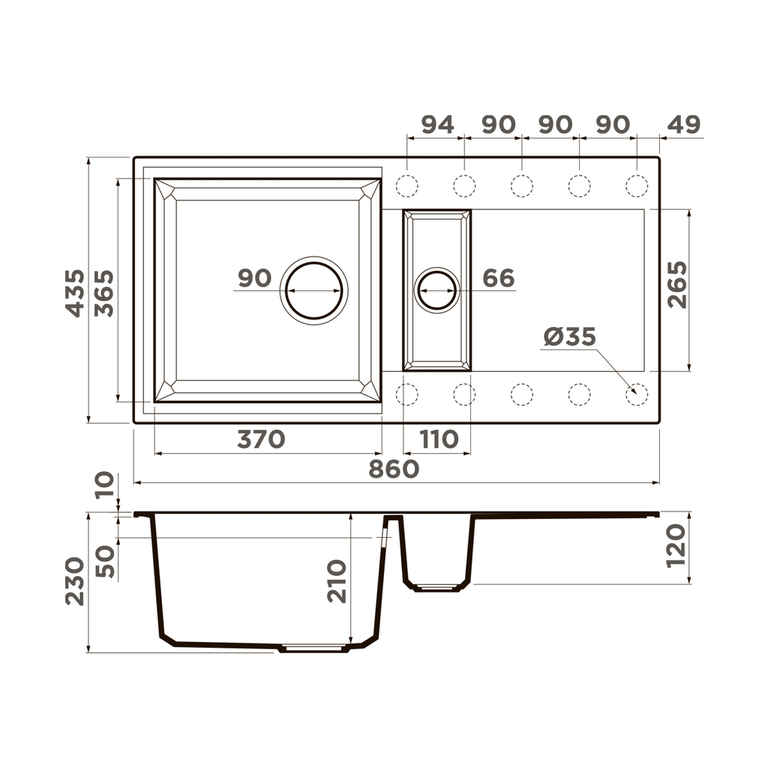 Мойка, OMOIKIRI Sakaime 86-2-EV (4993204)