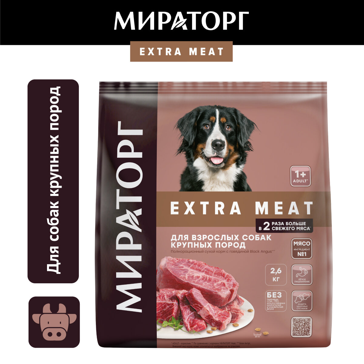 Сухой корм Мираторг Extra Meat для взрослых собак крупных пород старше 1 года, с говядиной Black Angus, 2.6 кг