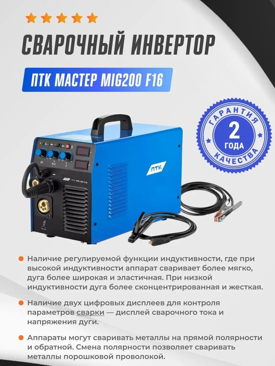 Сварочный аппарат инверторного типа ПТК мастер MIG 200 F16 2020, MMA, MIG/MAG
