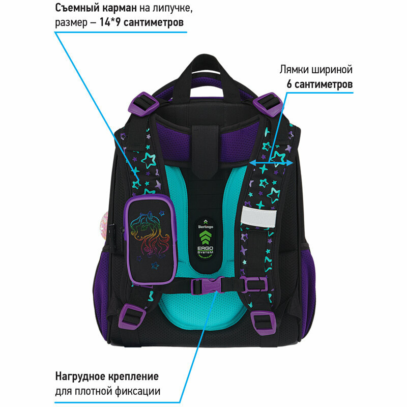 Ранец школьный Berlingo Expert "Pegas" 37x28x16см, 2 отделения, 2 кармана, анатомическая спинка (RU07114)