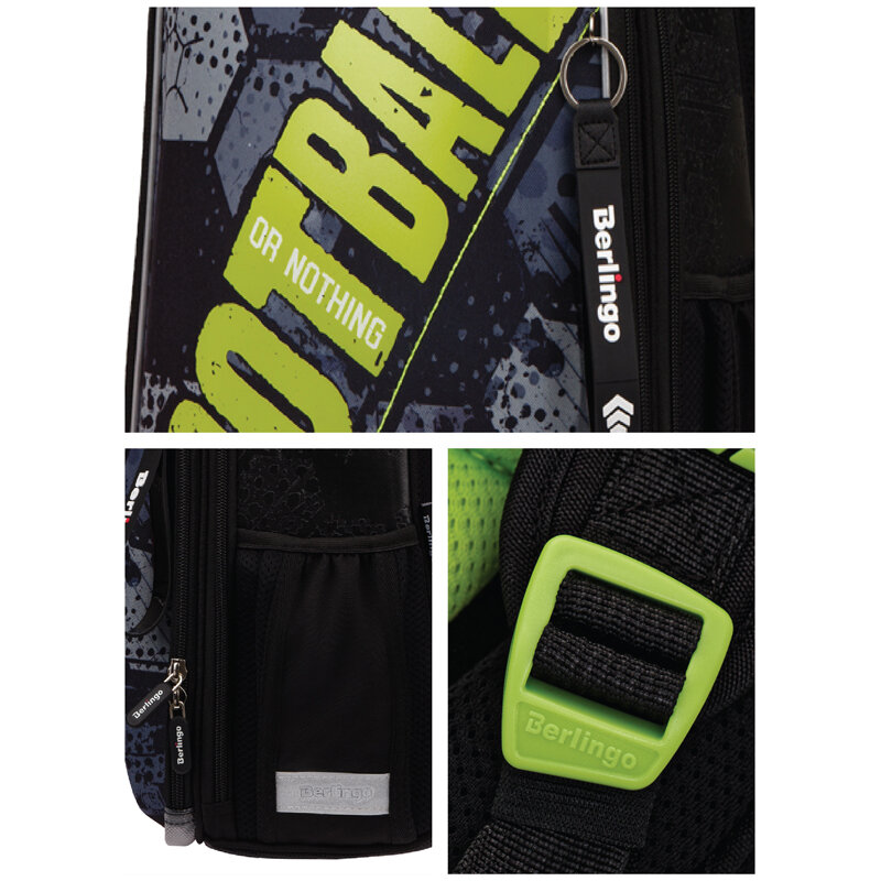 Berlingo ранец Expert Football or nothing, темно-серый/зеленый