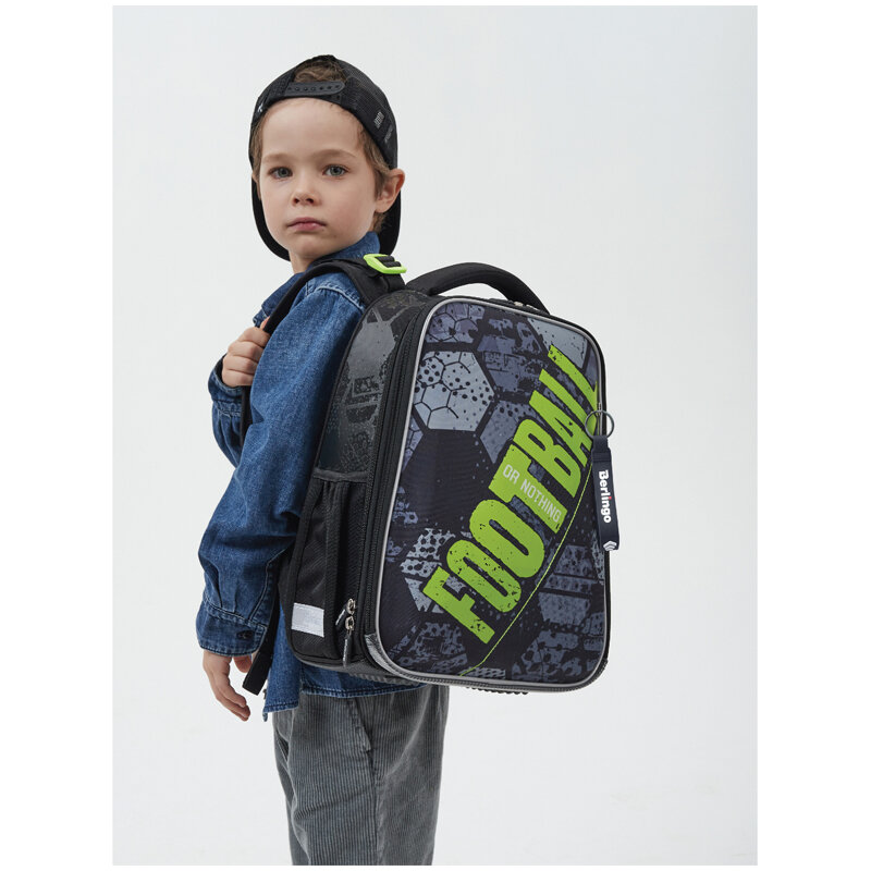 Berlingo ранец/ рюкзак/ школьный с ортопедической спинкой для мальчика Expert Football or nothing, темно-серый/зеленый