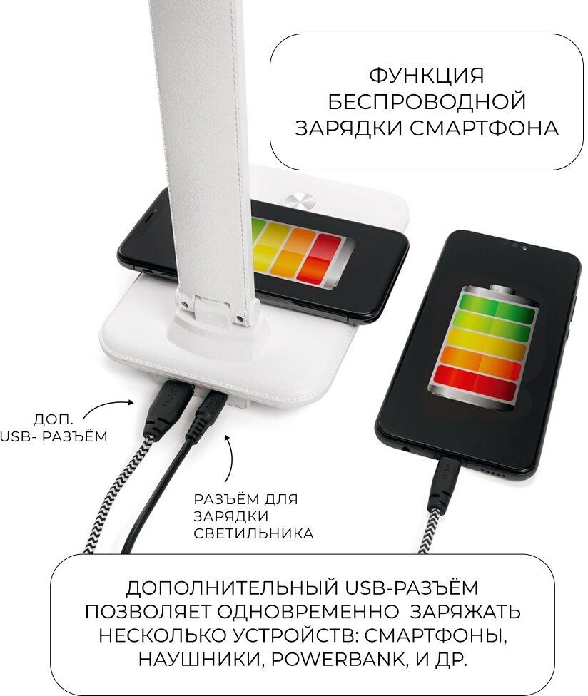 Настольный складной диммируемый светильник Feron 25W,3000-6000К, беспроводная зарядка и USB порт, бе .