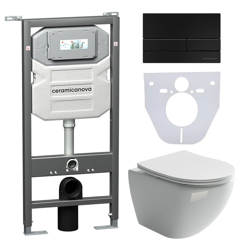 CeramicaNova Комплект: система инсталляции с кнопкой+унитаз, цвет: черный CN4002MB_1002B_1000