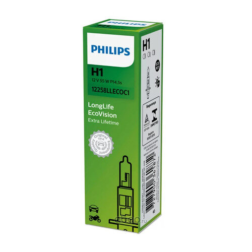 PHILIPS 12258LLECOC1 Лампа H1 12V 55W P14.5s LongLife EcoVision