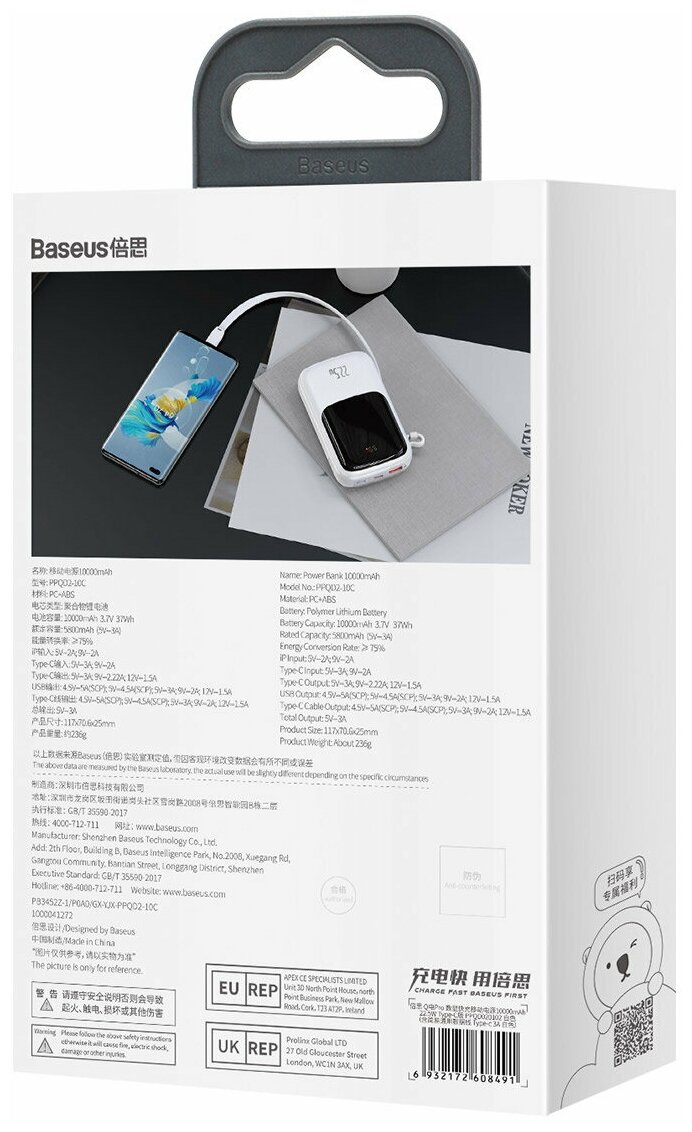 | Дополнительная информация | Внешний аккумулятор повербанк Baseus Qpow Pro Power Bank 10000mAh 22.5W + встроенный кабель Type-C |