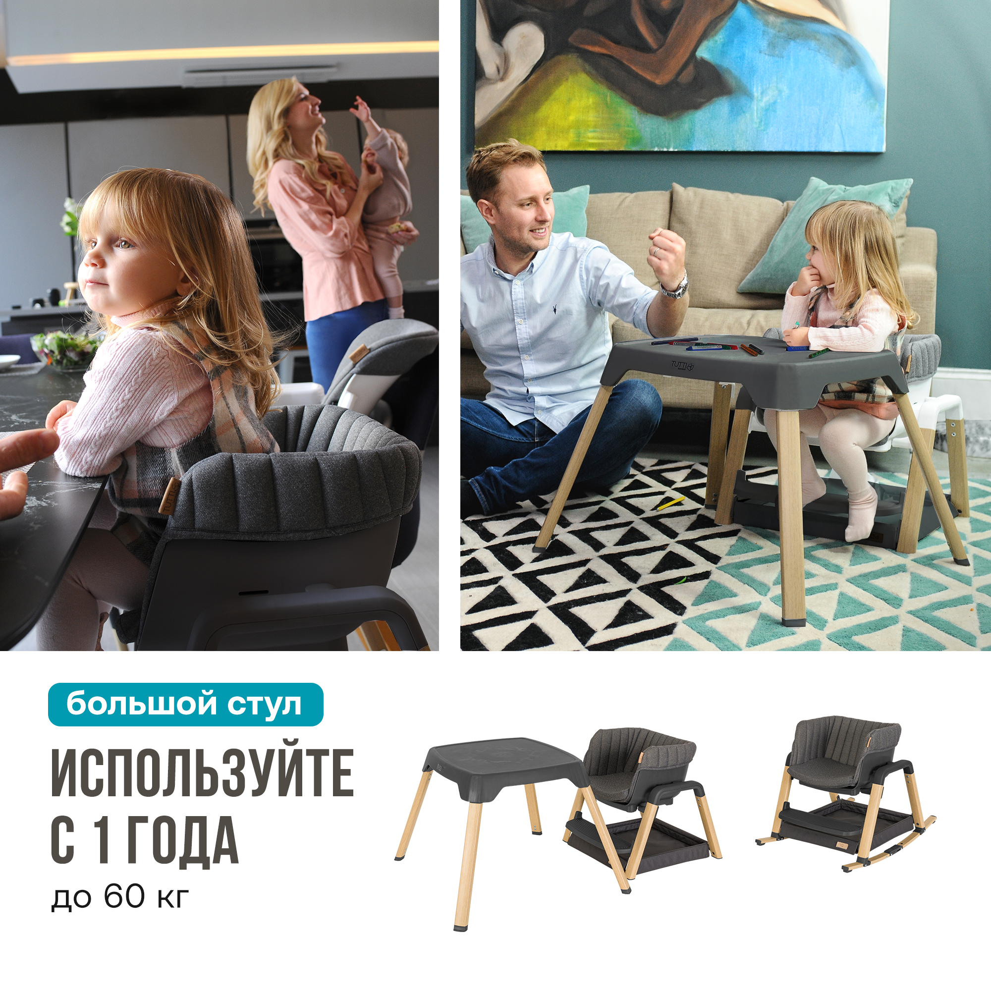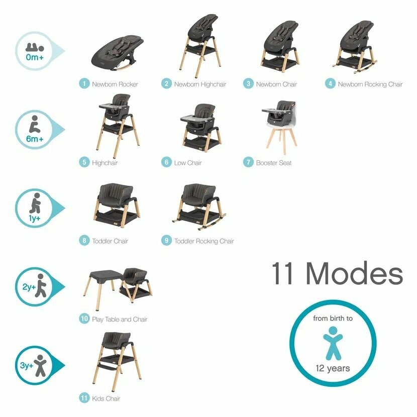 | Отзыв: | Выбрали этот стул за его более "взрослый" вид и за возможность трансформироваться от шезлонга до барного стула. В общем, он с нами до 12 летнего возраста. Из нюансов - столик небольшой, угол наклона спинки имеет 3 положения, но слишком уж похожих. В сравнении с Peg-perego (стул дочери) именно как стул для кормления малышей уступает, но всё равно только им пользуемся. Красивый, относительно компактный, основные задачи решает. |
