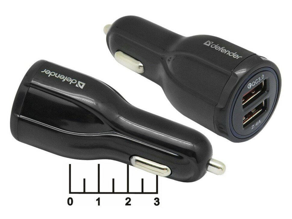 Автомобильное зарядное устройство Defender UCA-100 USB-порт 2.4А + QC3.0 3А, чёрный