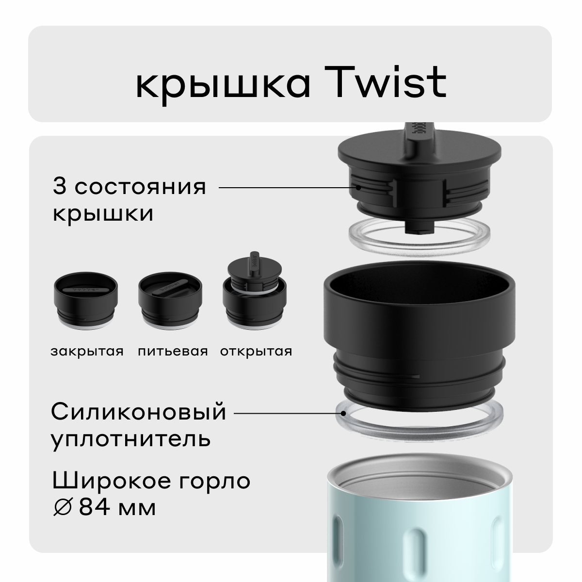 | Дополнительная информация | крышка Twist имеет три положения: 1. питьевая - прокрутите до щелчка, чтобы пить как из кружки; 2. открытая - сделайте два оборота, чтобы вытащить внутреннюю часть крышки; промойте Tumbler водой и залейте новый напиток; 3. закрытая - в таком положении температура напитка сохраняется максимально долго. Tumbler c закрытой крышкой на 100% герметичен. |