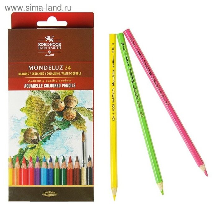 Карандаши цветные акварельные художественные KOH-I-NOOR "Mondeluz", 24 цвета (3718024001KSRU)