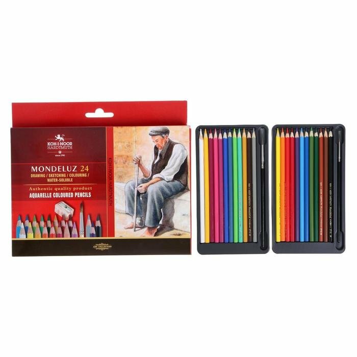 Карандаши акварельные набор 24 цвета, Koh-I-Noor Mondeluz 3711 + точилка + кисть 1 штука, картонная упаковка, европодвес./В упаковке шт: 1