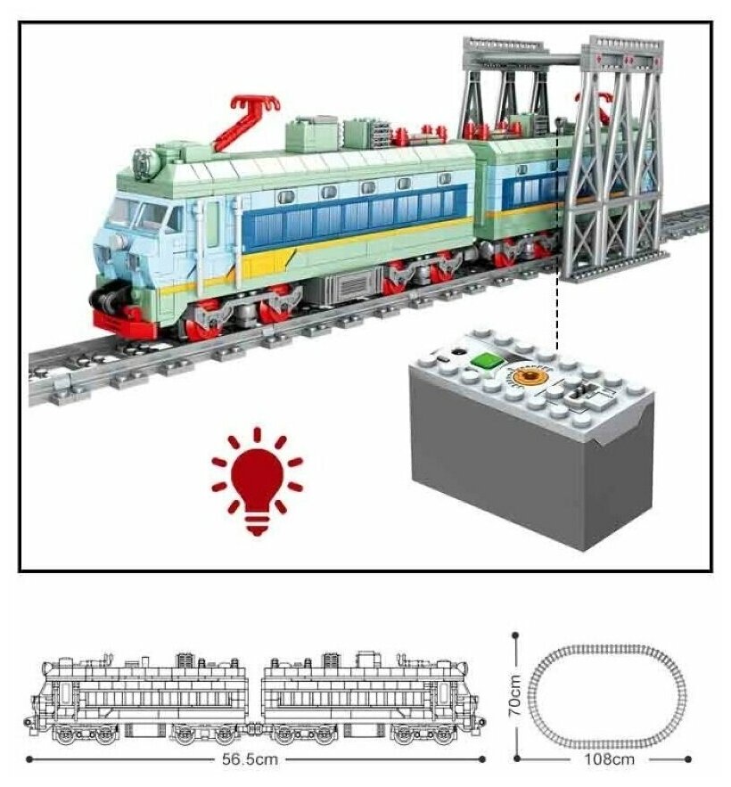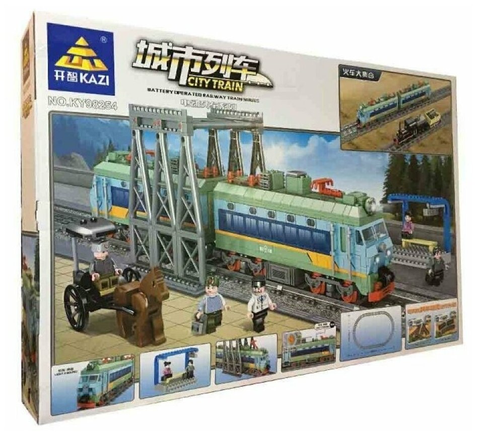 Конструктор KAZI 98254 Поезд Поезд с мотором - пригородная электричка 1162 дет. 64x10x42.5 см интересное: