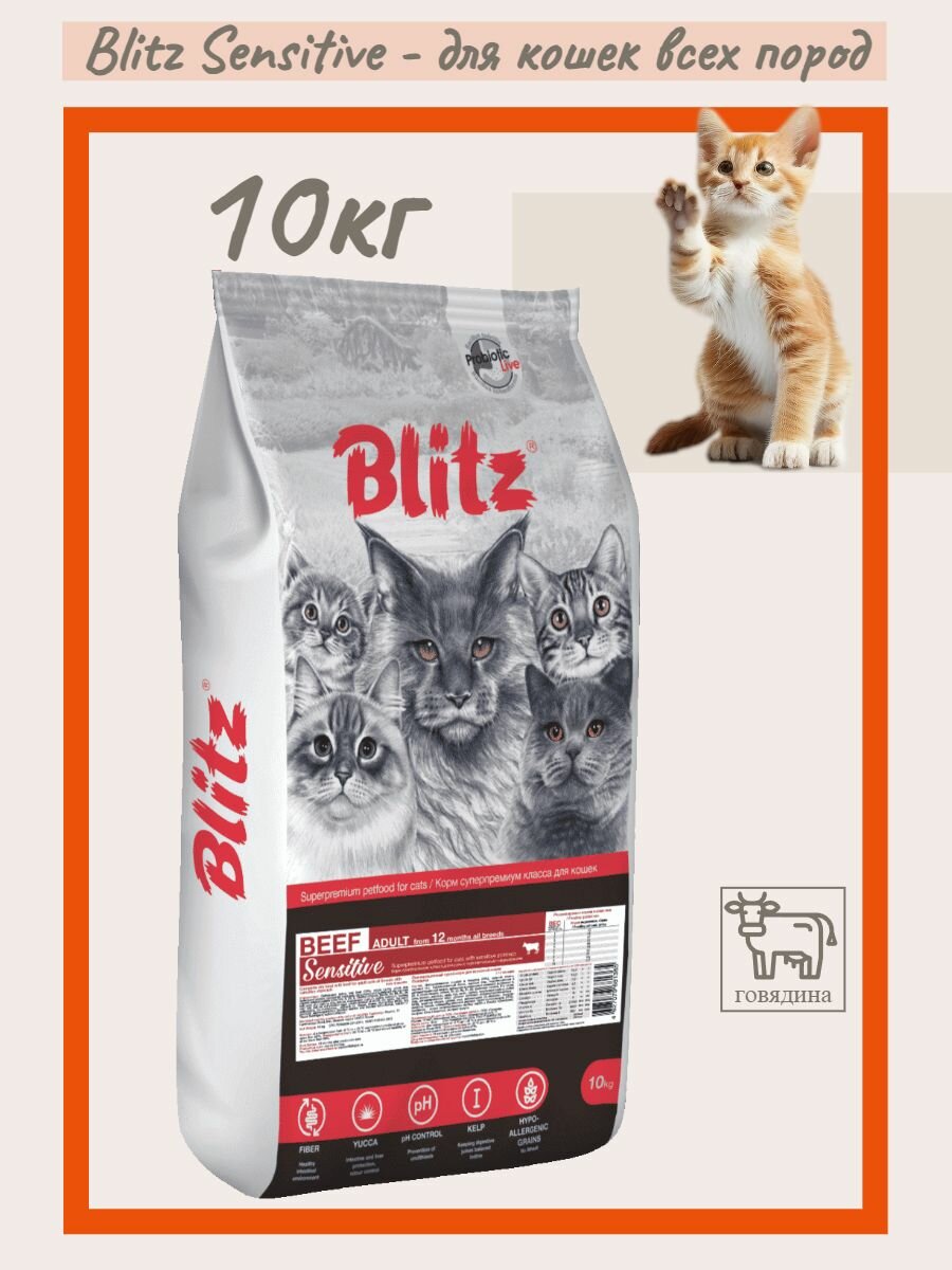 Blitz Sensitive Beef Adult Cats All Breeds сухой корм для взрослых кошек с чувствительным пищеварением, с говядиной - 10 кг