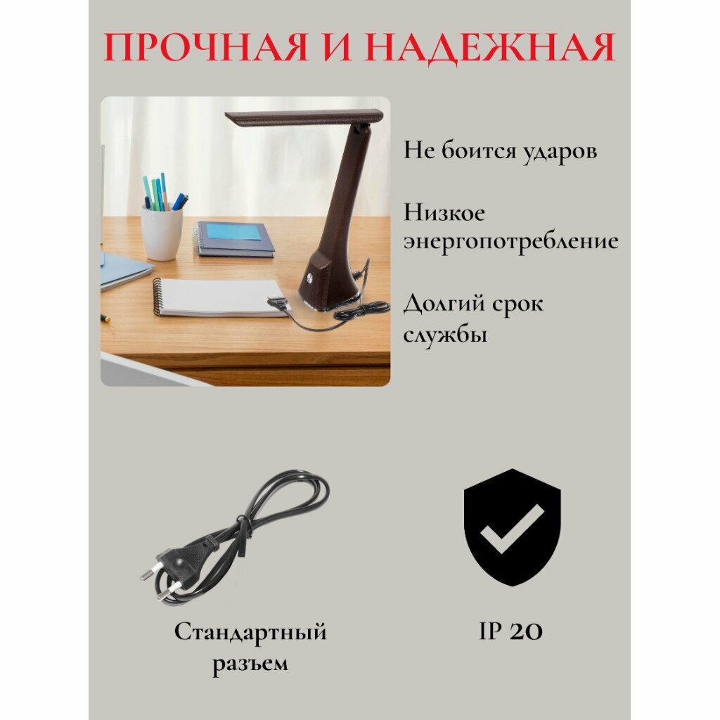 Ultraflash UF-733 С10 светильник светодиодн. настольный 8W(380lm) 6000K, сенсор, 3 ур.ярк., "под кожу" коричн. (арт. 838553)