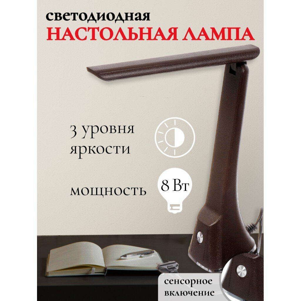 Ultraflash UF-733 C10 коричневый (led настольный Светильник. 8 Вт, 3 уровня яркости)