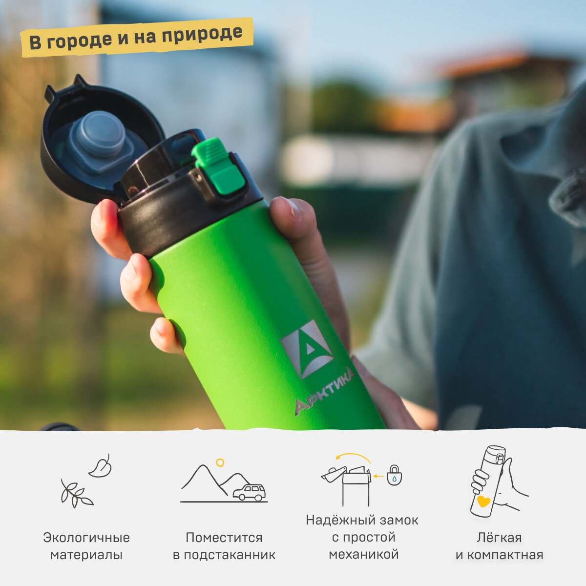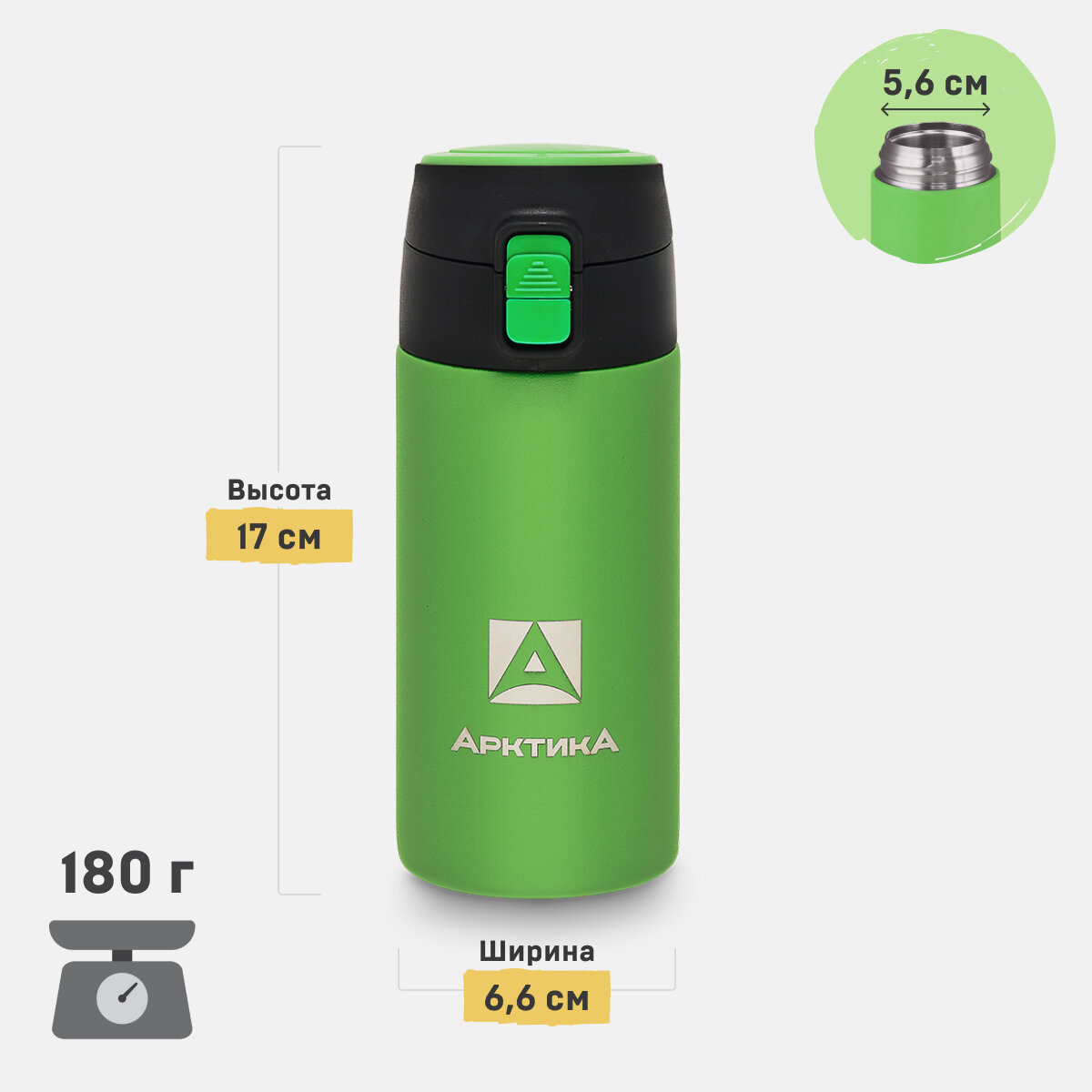 Термокружка для чая и кофе Арктика 705-500 зеленый 0,5 литров термос для напитков с кнопкой-фиксатором