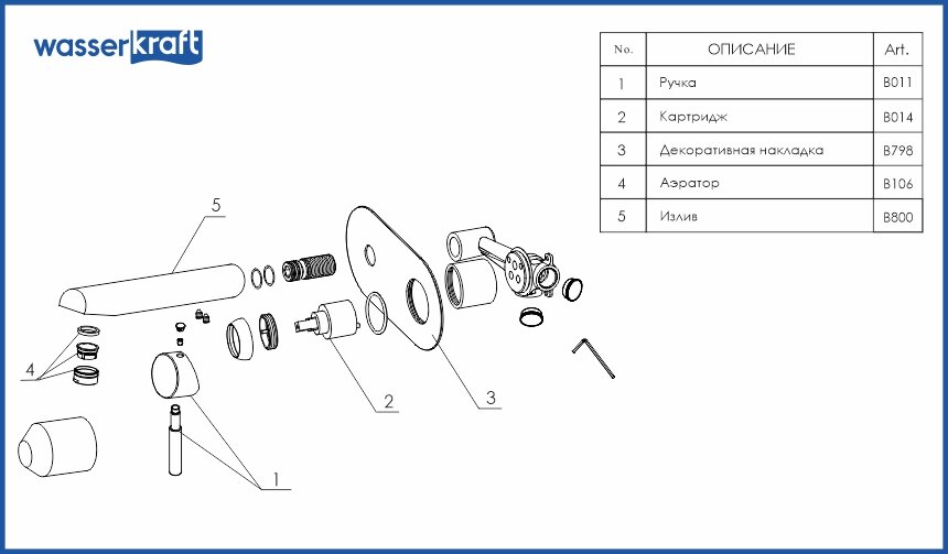 Main 4130 Встраиваемый смеситель для умывальника, Wasserkraft 4130