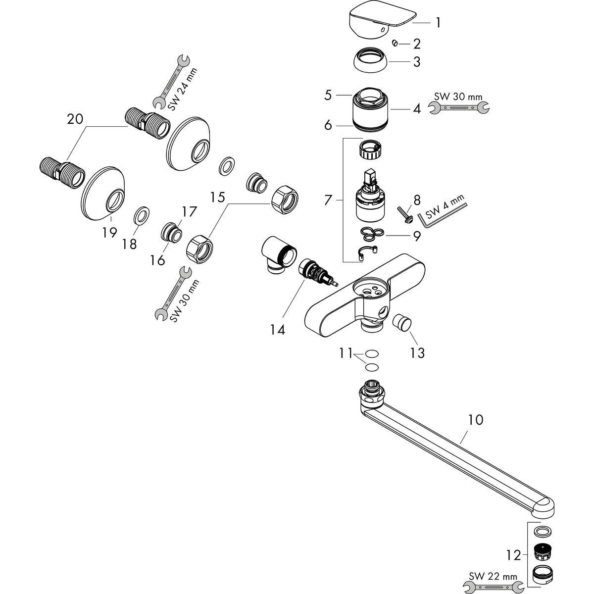 00030436 Hansgrohe 71402000 Logis смеситель для ванны длинный излив 00000047893 .
