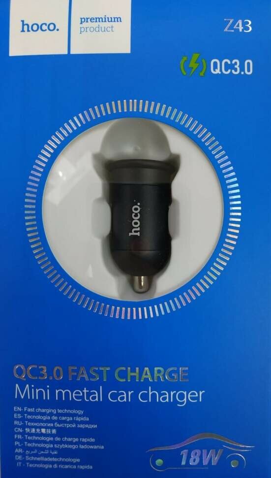 СохранитьЗарядное автомобильное азу usb Hoco Z43 QC 3.0 18w быстрое, черный интересное: