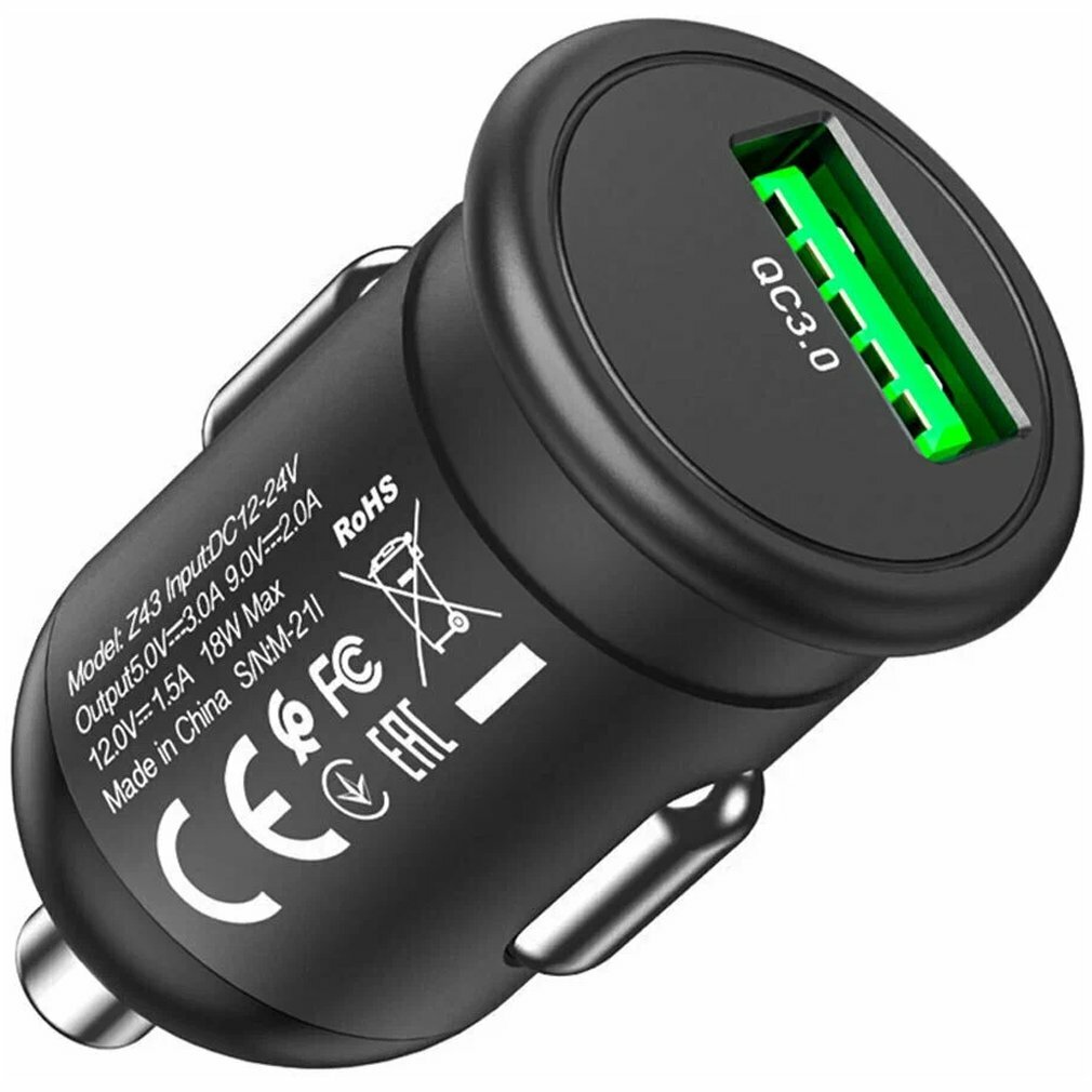 Автомобильная зарядка HOCO Z43 Mighty 1xUSB 3А 18W QC3.0 (черная)
