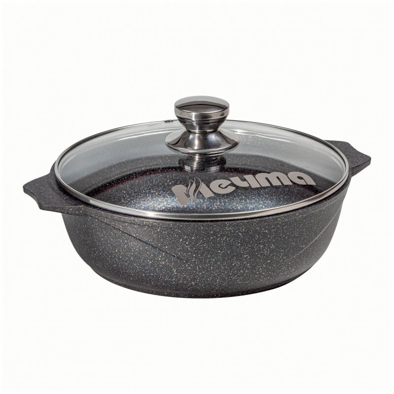 Жаровня-сотейник 4,5 л 28см Elan Gallery гармония вкуса Черный мрамор с крышкой
