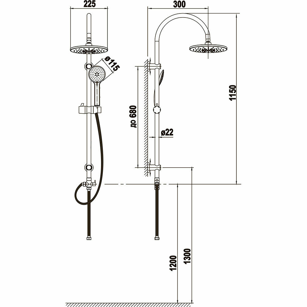Купить Душевой комплект ARGOtech Agnes AGD 25.1101 B со шлангом 1500 мм с лейкой d115 мм со стойкой 1150 мм с верхним душем d225 мм