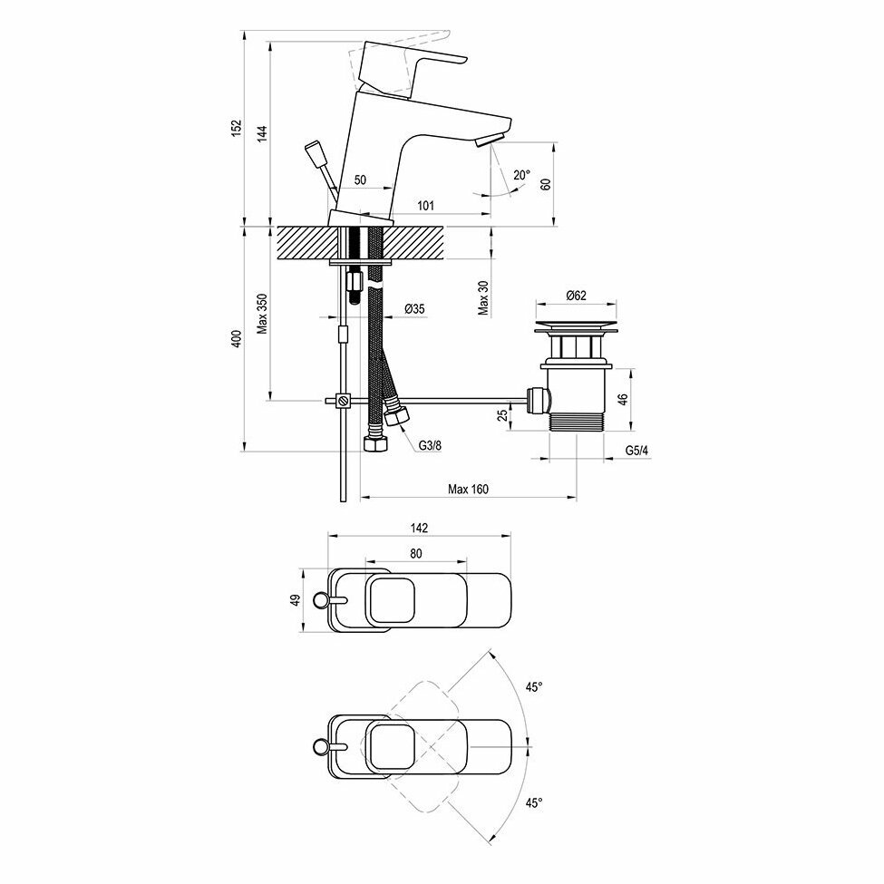 | Дополнительная информация | диаметр картриджа 35 мм; соединительные шланги: гибкий 400 мм, диаметр G3/8; открывание стока: с тросиком и сточным комплектом; гарантия на смесители: 5 лет |