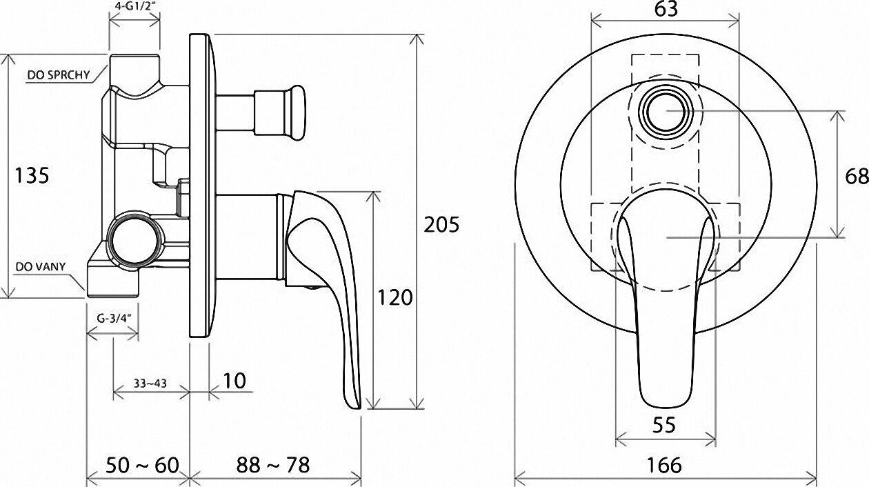 Смеситель для ванны/душа RAVAK Rosa RS 061.00 встраиваемый, в комплекте со скрытой частью