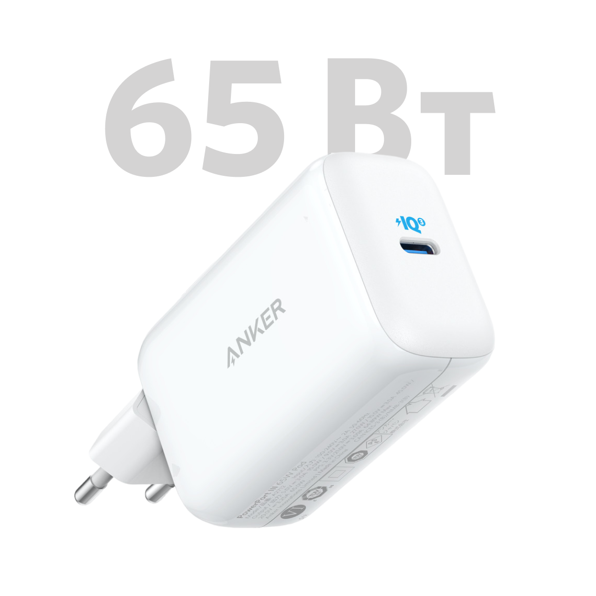 Сетевое зарядное устройство Anker PowerPort III Pod 65W USB-С для iPhone 15/14/13/12 и других устройств (A2712), белый