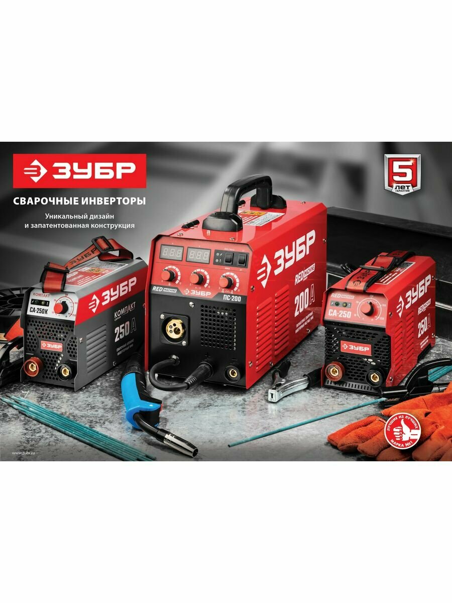 ЗУБР ММА, 250 А, компакт, сварочный аппарат инверторный, макс. электрод Ø 6.0 мм (СА-250К)