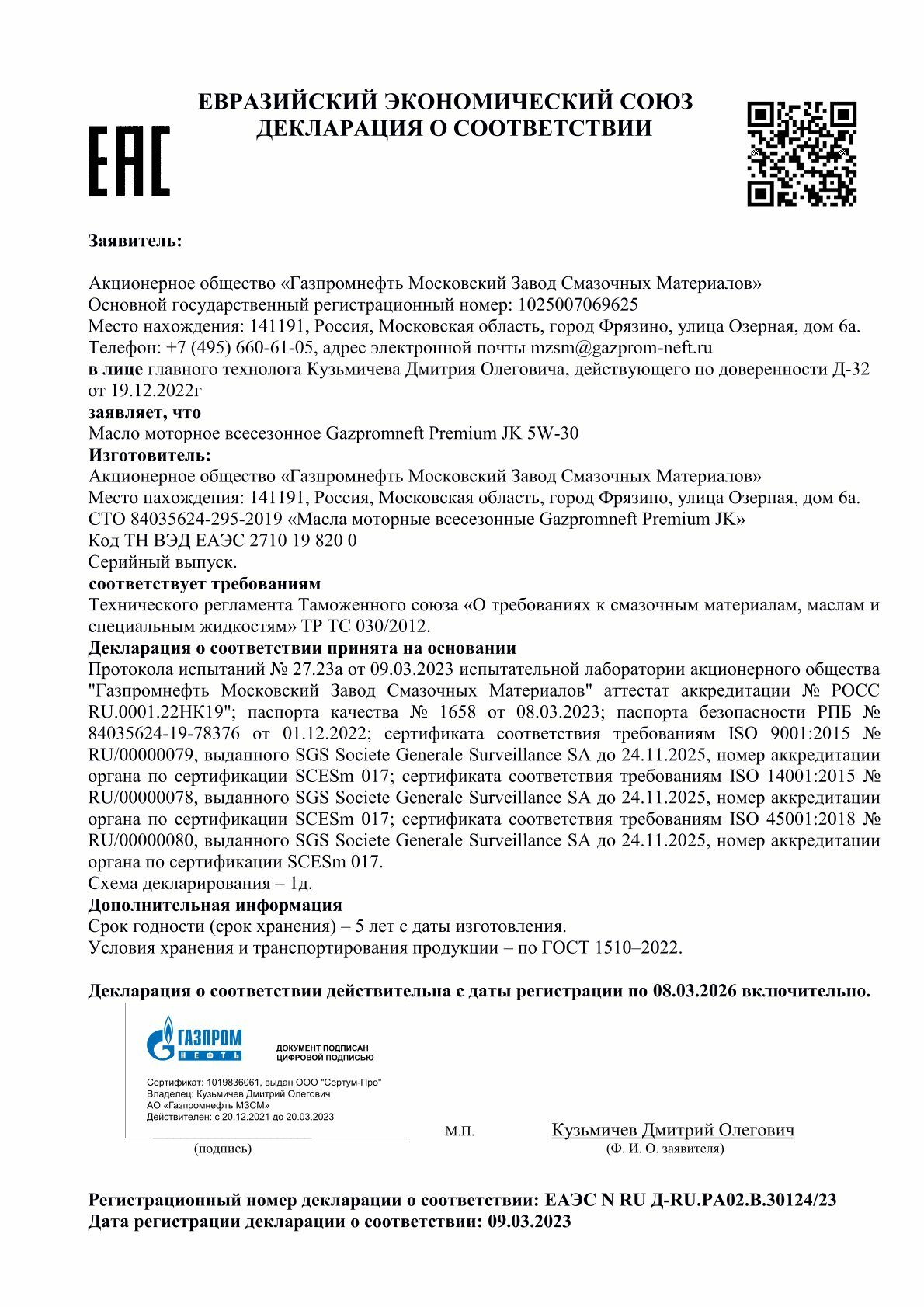 СохранитьМасло моторное GAZPROMNEFT PREMIUM JK 5W30 4л интересное: