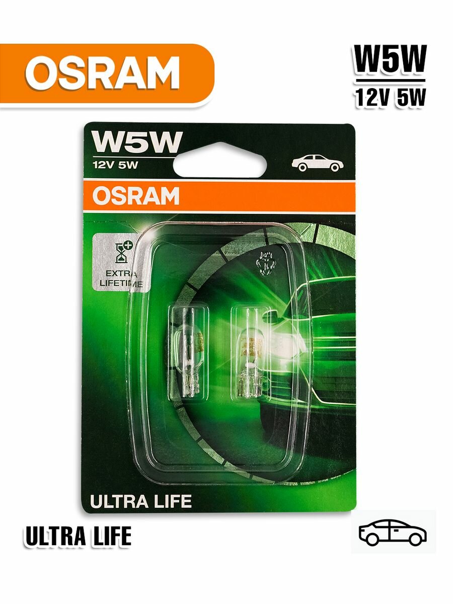 OSRAM Автолампа W5W W2.1 9.5d ULTRA LIFE , 2шт 12V ,1,10,50,200 2825ULT-02B