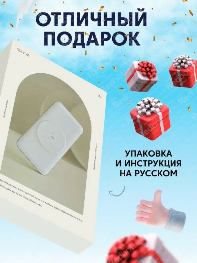 Внешний аккумулятор Mi Solove W10, 10000 мАч, 3 А, MagSafe, быстрая зарядка, белый Solove 946 .