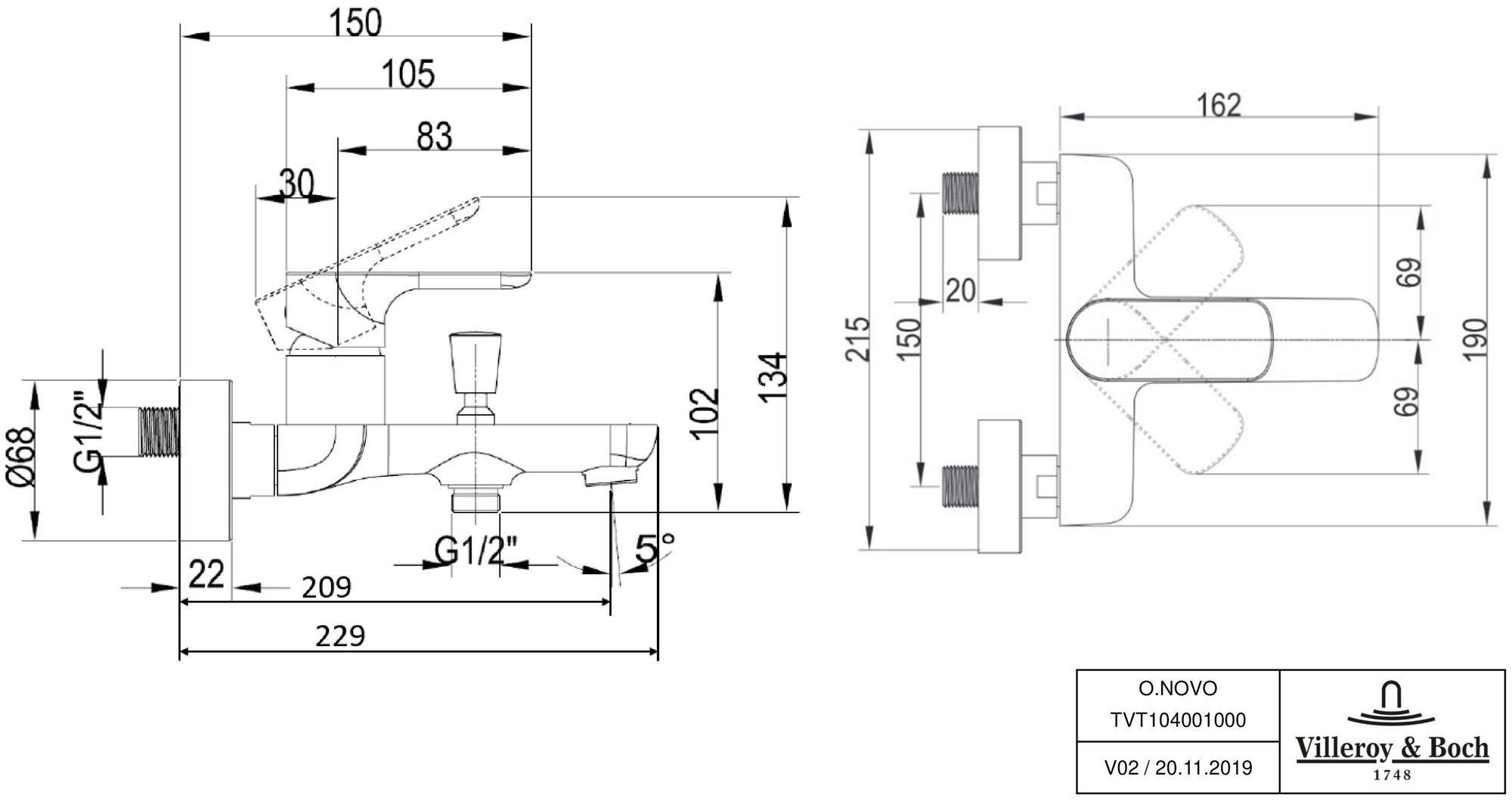 Смеситель Villeroy & Boch O.novo Start TVT10400100061 для ванны с душем интересное: