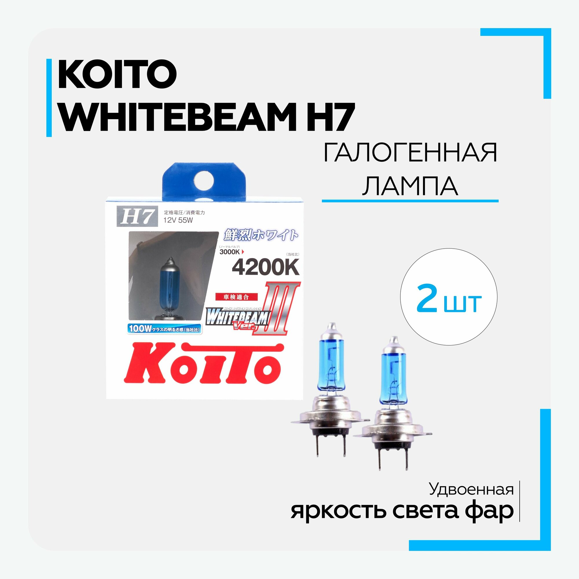 Лампа автомобильная галогенная KOITO Whitebeam III H7 P0755W 4200K 12V 55W (100W) P43t-38 4200K 2 шт.