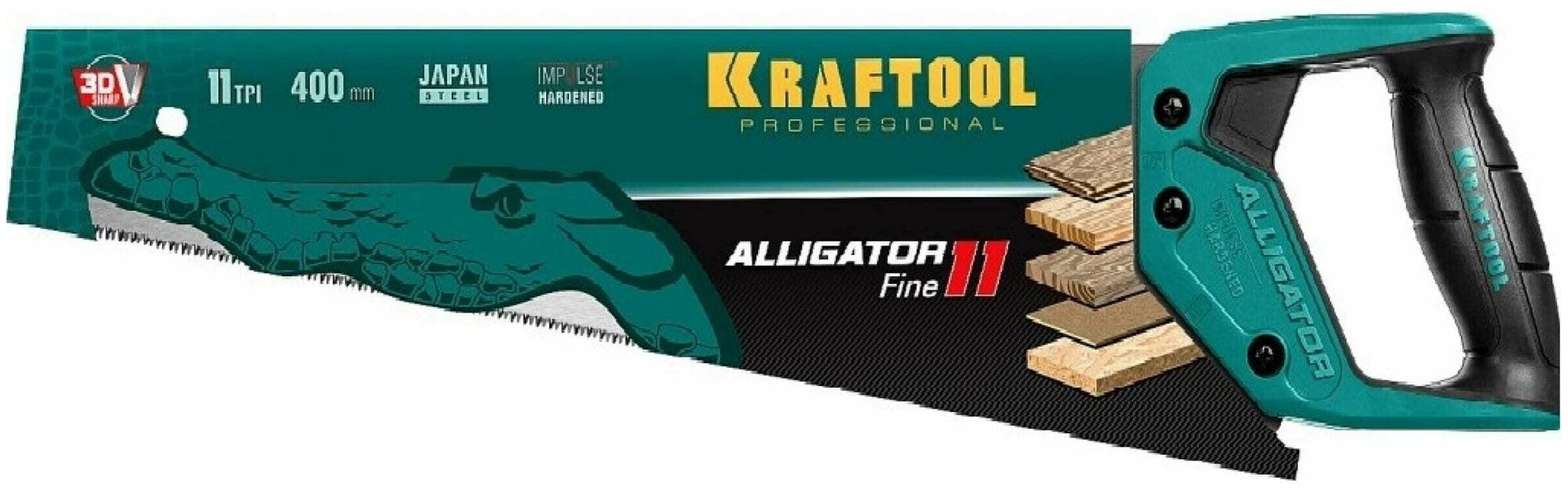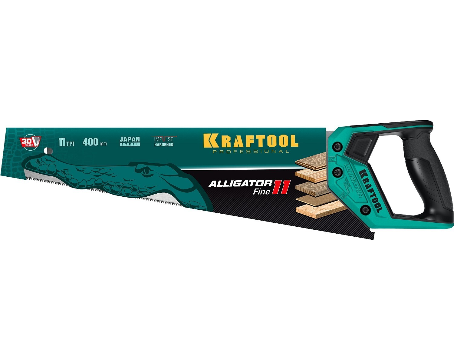 KRAFTOOL Ножовка для точного реза "Alligator 11", 400 мм, 11 TPI 3D зуб, KRAFTOOL