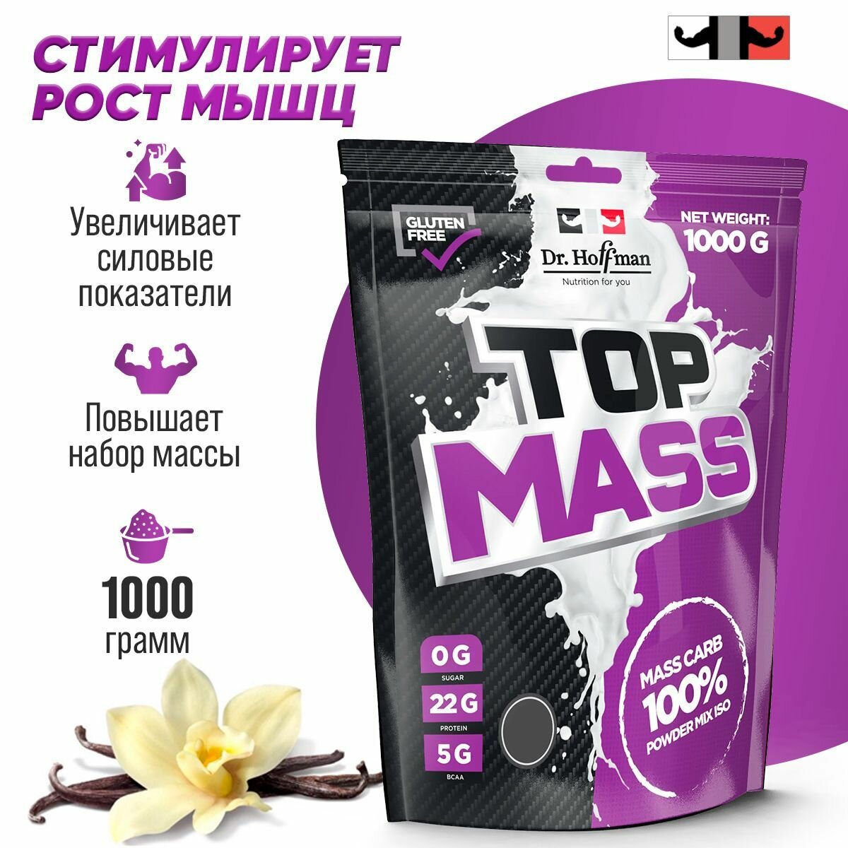Гейнер для набора мышечной массы Dr.Hoffman TOP MASS 1000 г (ваниль)