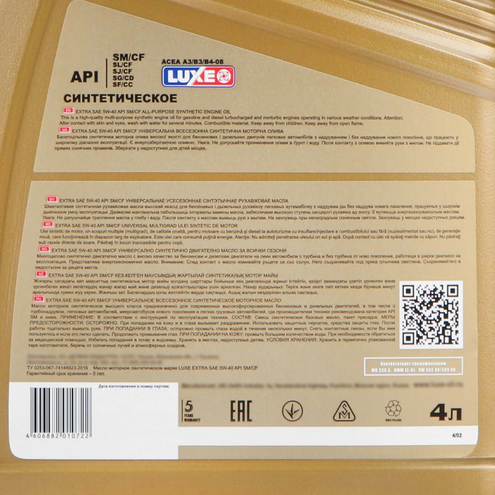Ниже Вы можете прочитать отзывы на Моторное масло LUXE EXTRA синтетическое, 5W40, SM/CF, 4 л 4, ознакомится с подробными характеристиками, посмотреть интересные обзоры и фотографии на Моторное масло LUXE EXTRA синтетическое, 5W40, SM/CF, 4 л 4.