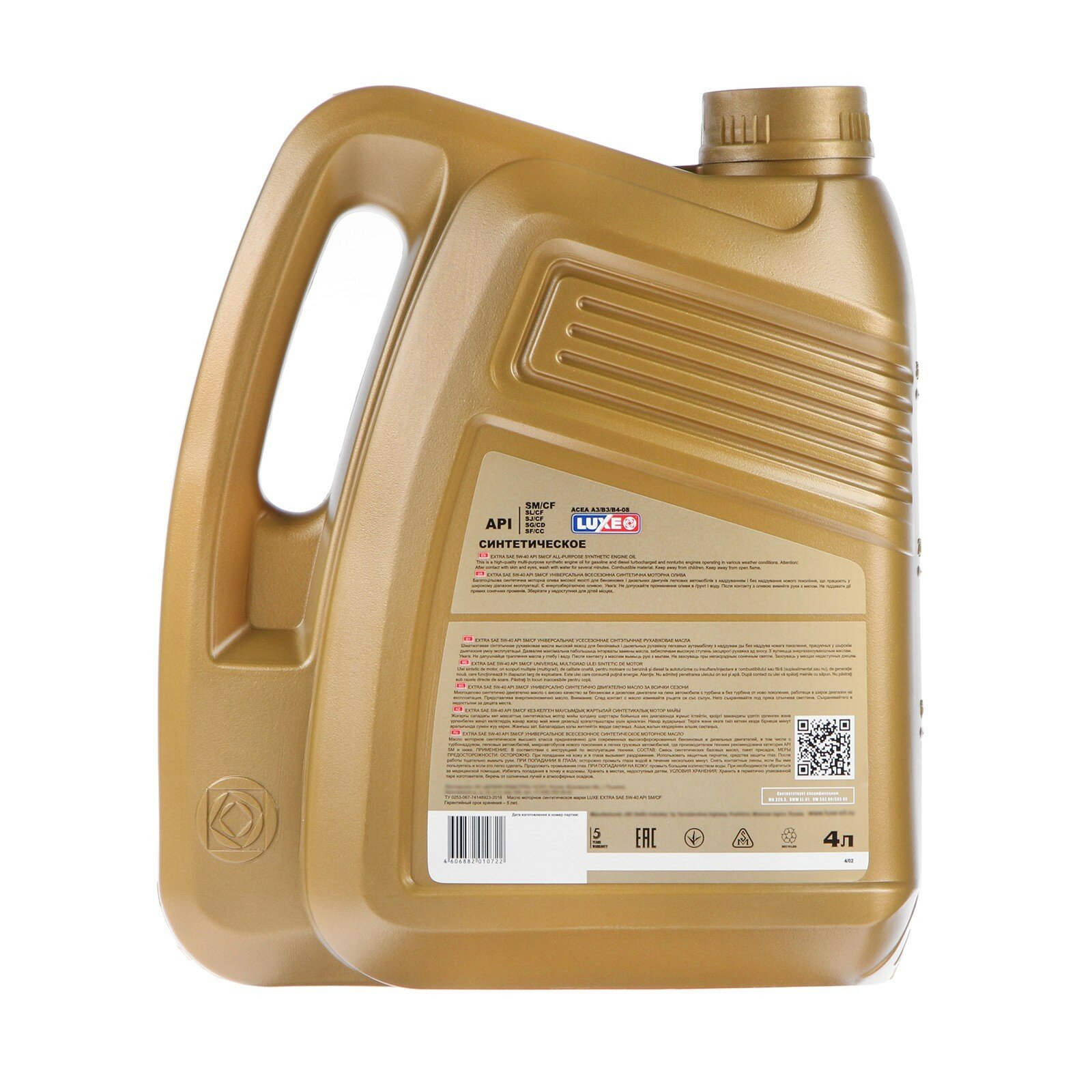 Купить Моторное масло LUXE EXTRA синтетическое, 5W40, SM/CF, 4 л 4