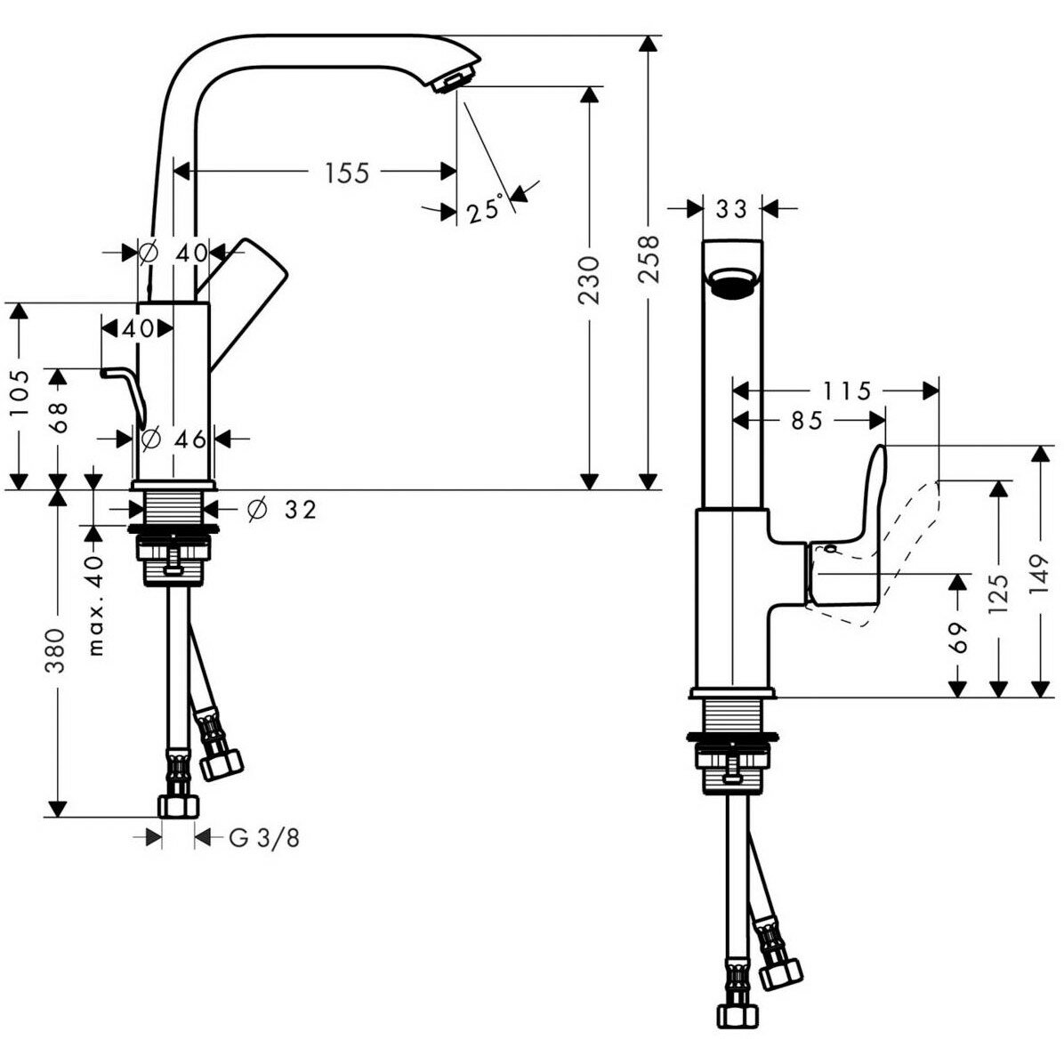 31087000 HG Metris смеситель для раковины, поворотный излив
