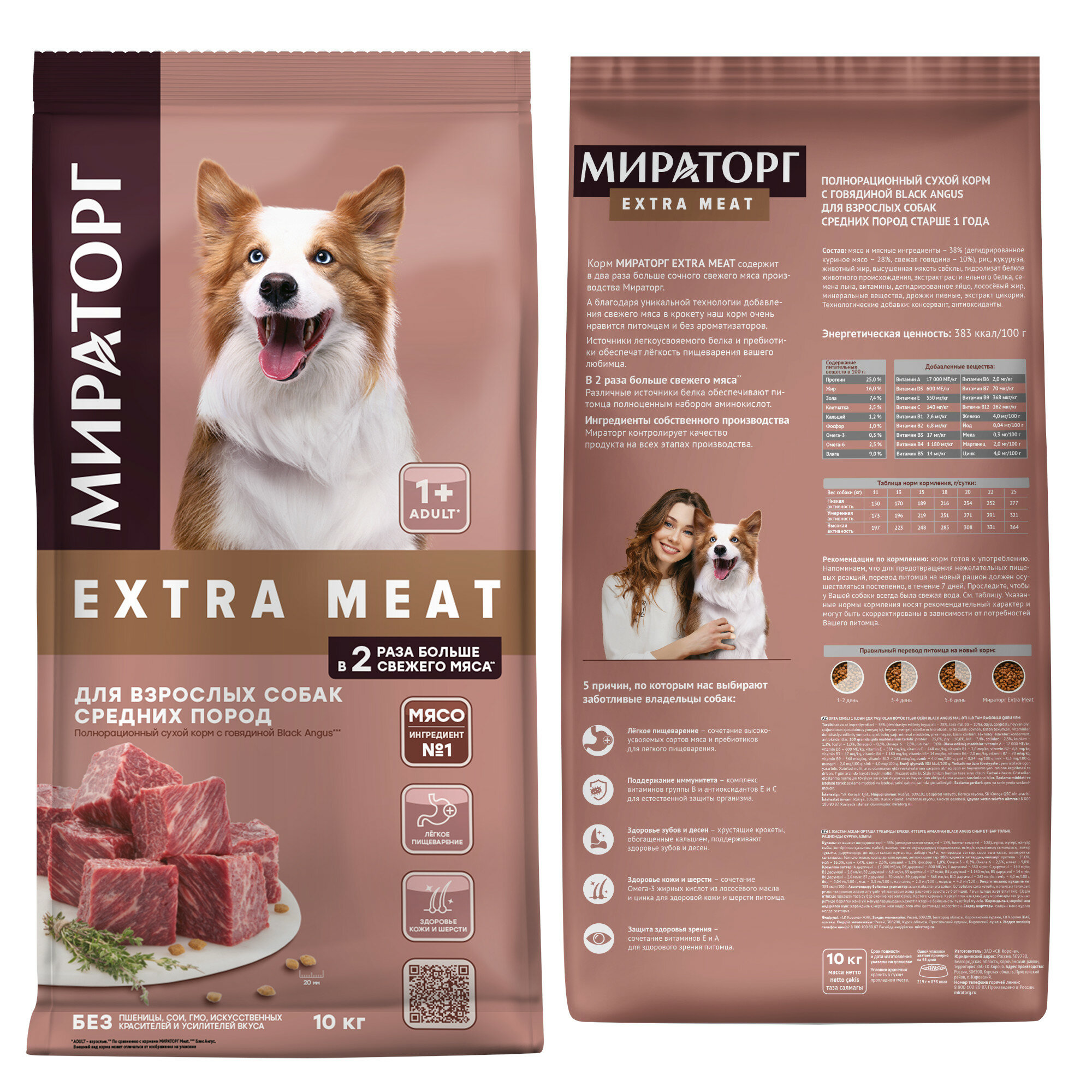 Корм сухой Мираторг EXTRA MEAT для взрослых собак средних пород старше 1 года с говядиной Black Angus 10 кг