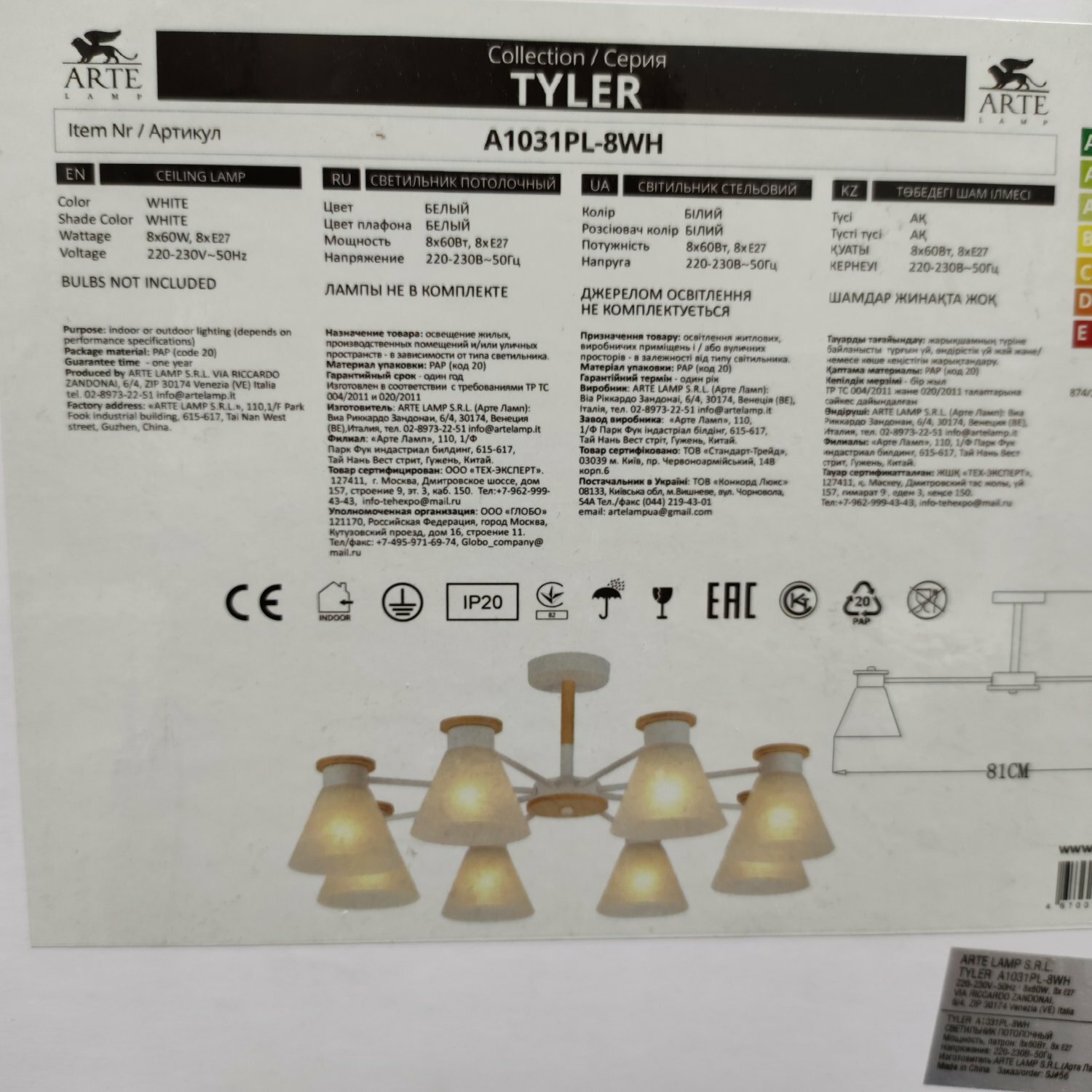 Arte lamp A1031PL-8WH Потолочная люстра Tyler Tyler