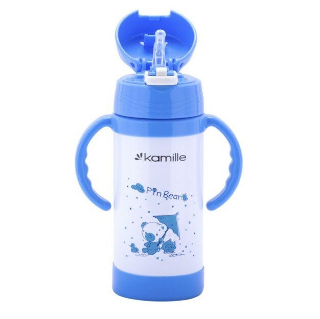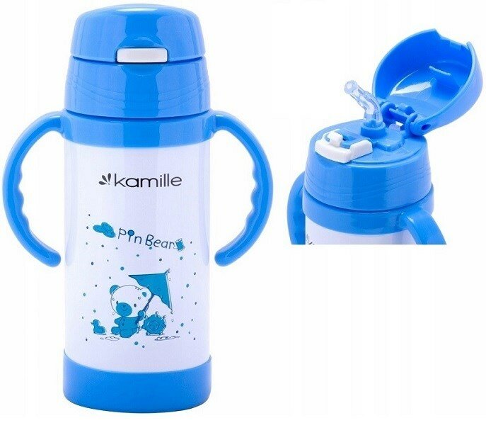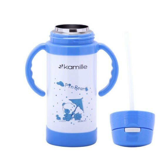 Термос для детей 350 мл. с трубочкой и ручками Kamille KM-2085 (2085 / синий)