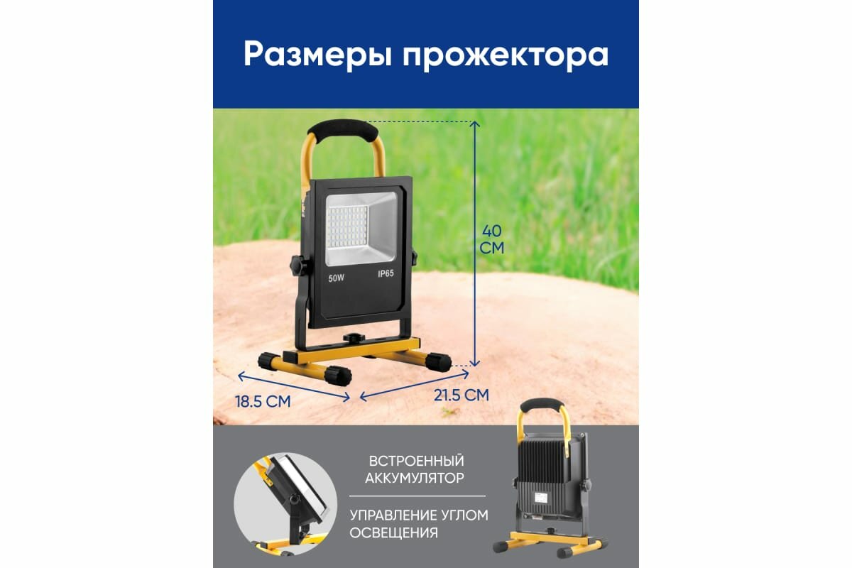 Feron Прожектор светодиодный переносной с зарядным устройством 50W, 6400K, SMD5730, IP65, LL-915 41531