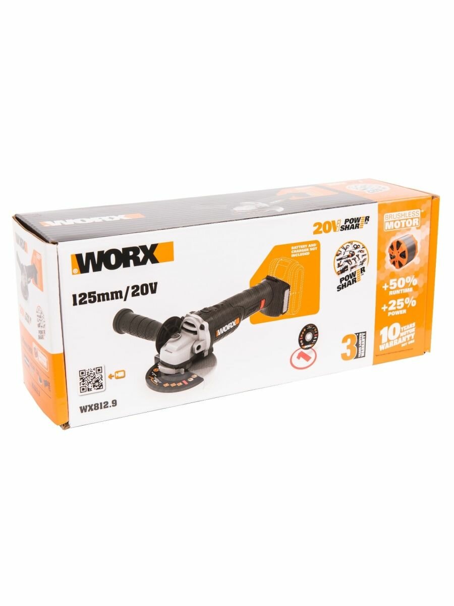 Угловая шлифмашина аккумуляторная WORX WX812.9, 125мм, 20В, бесщеточная без АКБ и ЗУ