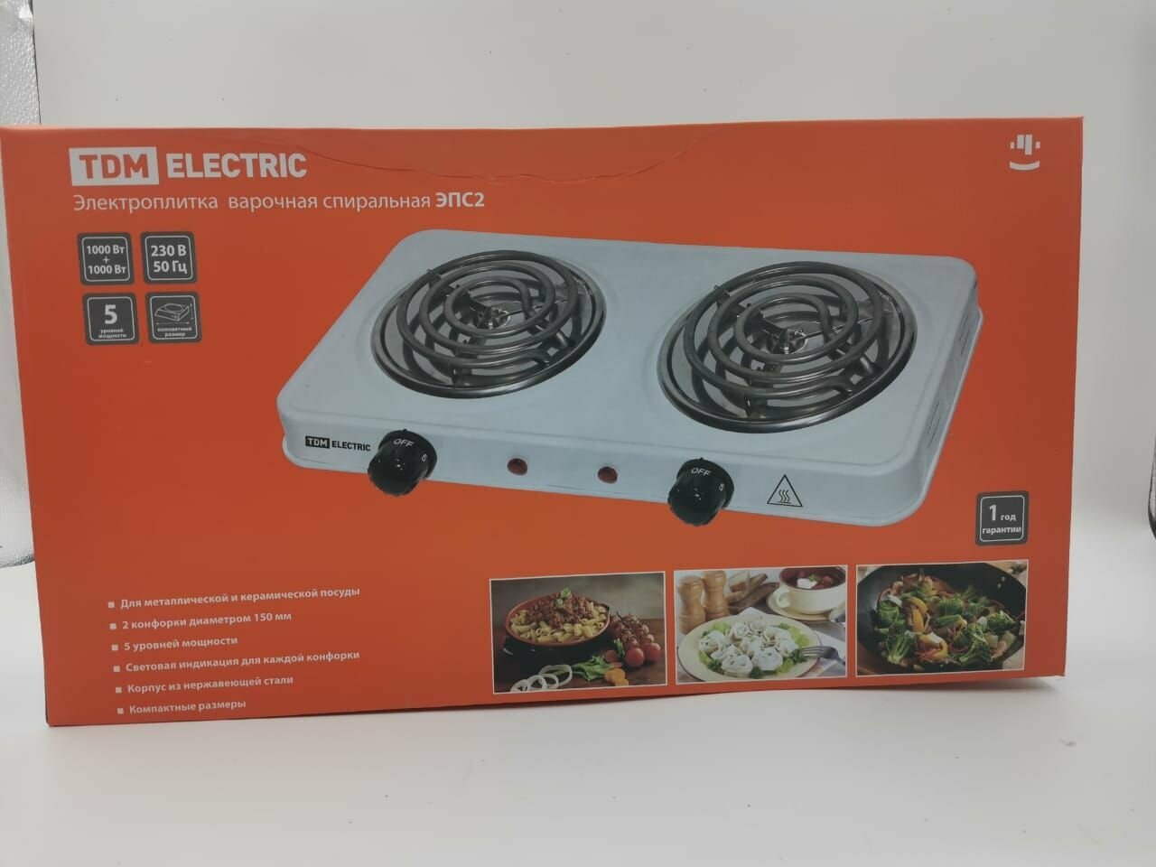 Электроплитка двухконфорочная TDM SQ2504-0002, ЭПС2, 230 В, 2х1 кВт, спираль, белая (1 шт.)